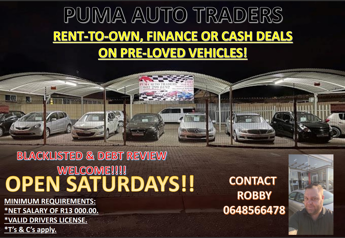 Puma Auto Traders is a pre-owned vehicle dealership situated in Witbank/Emalahleni. Our Friendly and trained team of salesmen are available to assist you with expert advice on a wide range of pre-owned vehicles. We specialize in RENT-TO-OWN, blacklisted and debt review clients welcome. Finance is also available. Contact Robby Today on 0648566478