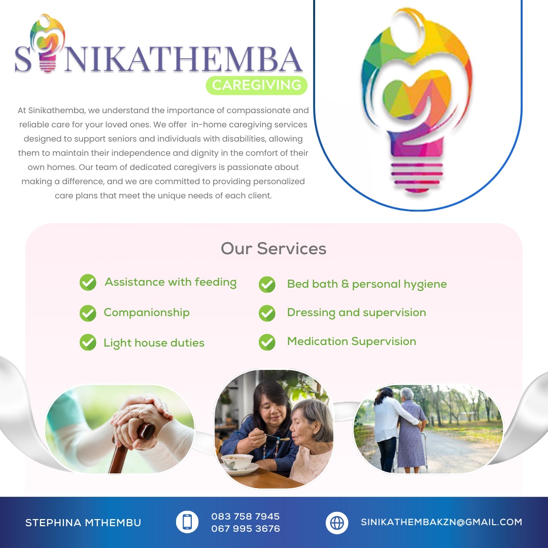SINIKATHEMBA Caregiving offers non-medical care, companionship & support to elderly and disabled individuals at the comfort of their homes, around KwaZulu-Natal.