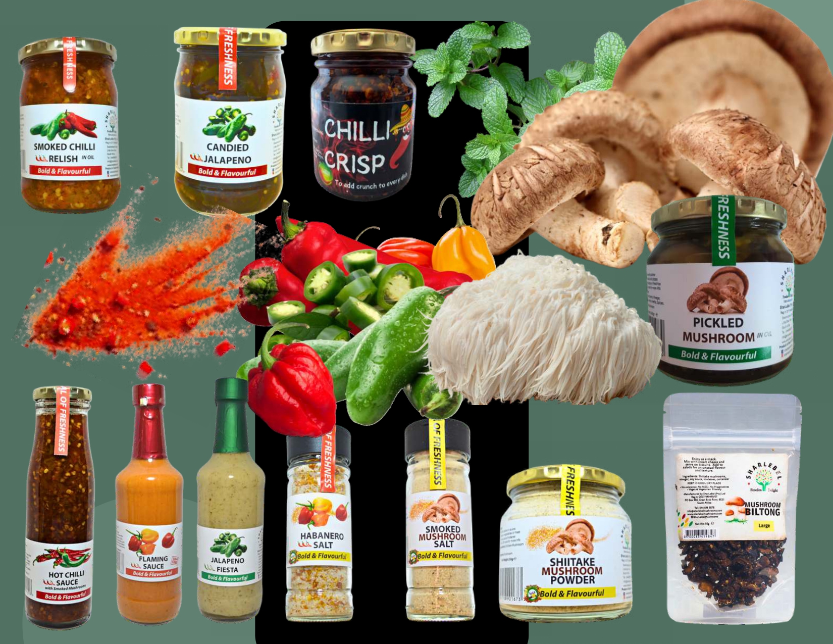 SharLeBel is an agro-processing business that processes chilies, gourmet mushrooms , herbs and spices derived from the agricultural sector and manufacture plant-based food products. SharLeBel sells the finished goods to markets, consumers, wholesalers, retailers, deli’s and various small businesses.